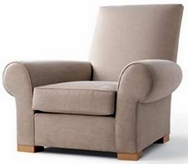 Кресло. Каркас: Фанера ГОСТ 3916.1-96, Брус хвойных пород, Резино-тканевые ремни "Elasbelt", рулонная змейка, термовойлок, холофайбер, сорель, ППУ "HR,HL,ST". Опоры массив бука, дуба. Расход ткани 6 м.п.