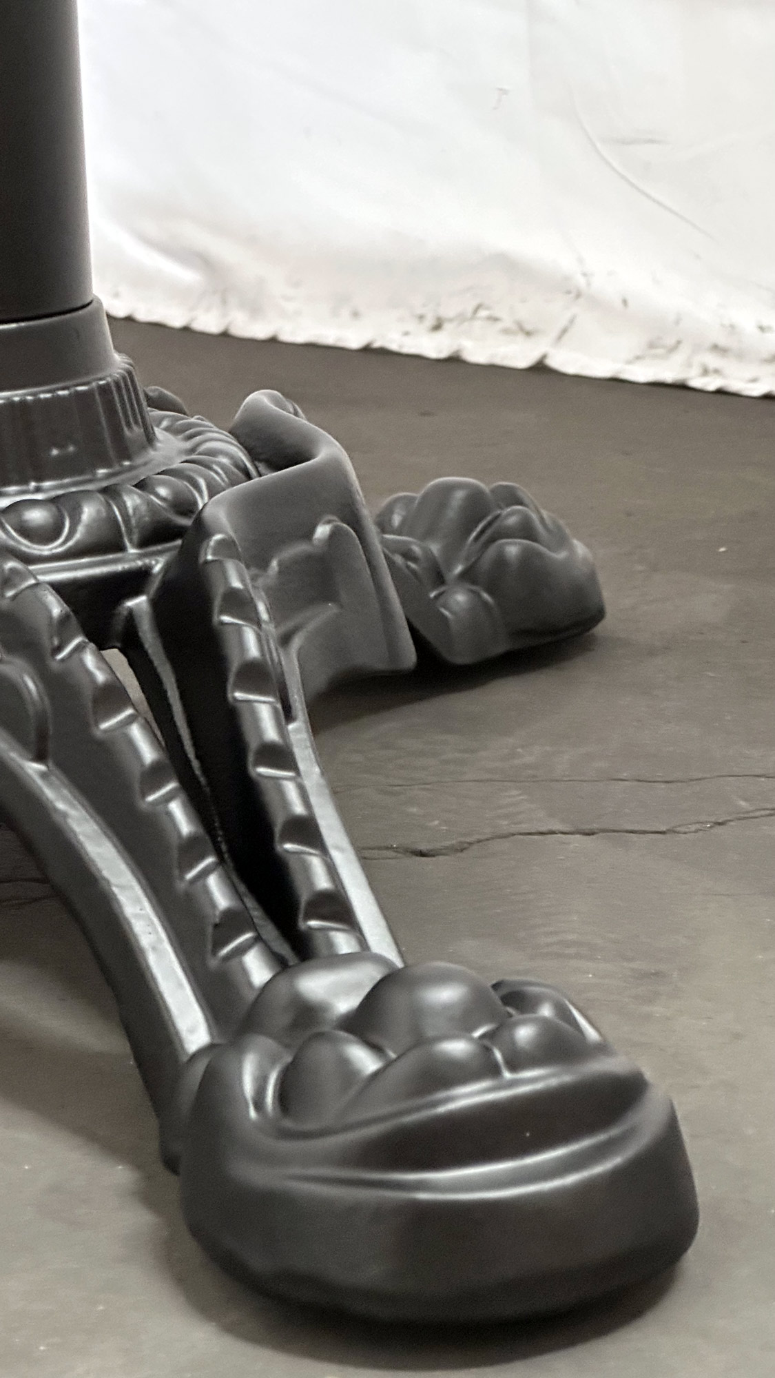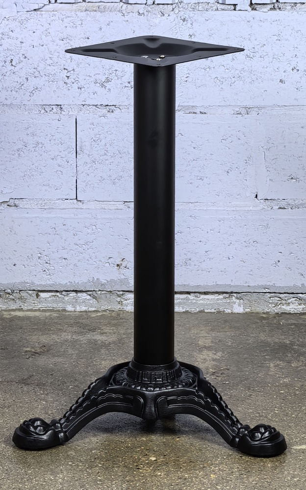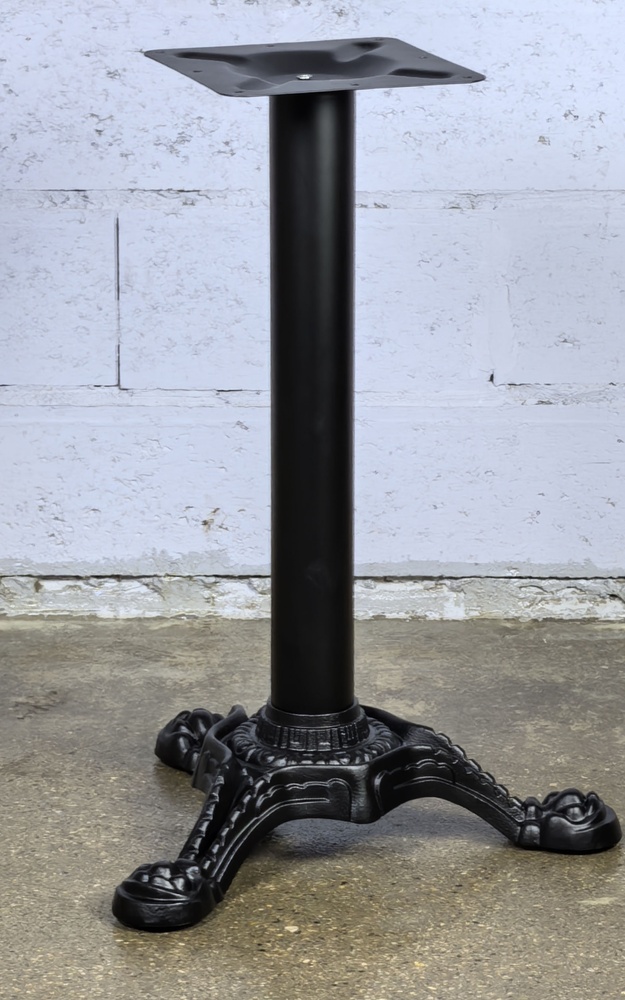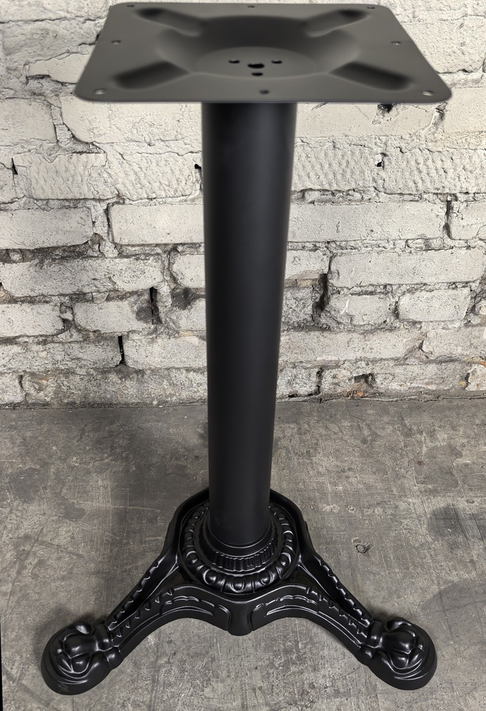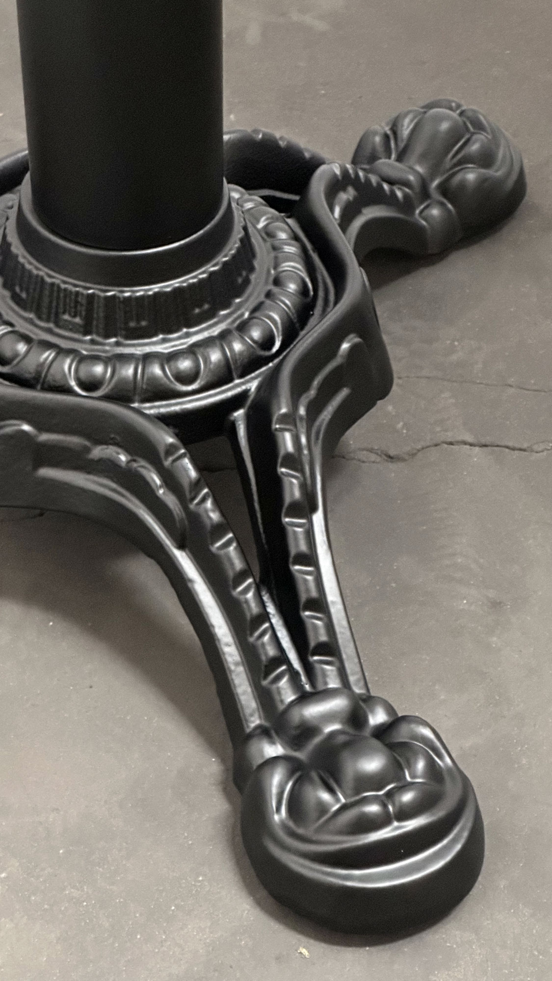 Подстолье чугунное. Труба - стальная. Основание - чугунное литье. Диаметр основания: 58 см, диаметр трубы: 7,6 см, размер верхней площадки: 25х25 см. Рекоменд. макс. размер столешницы - D-70.