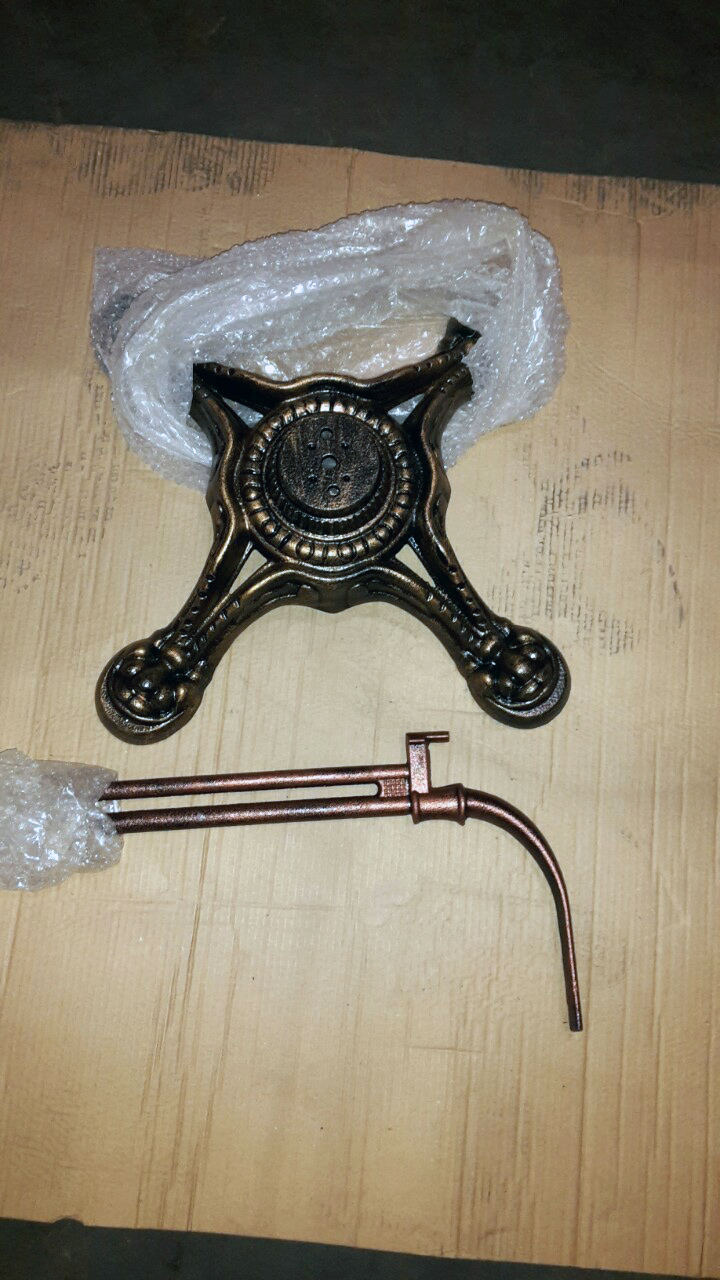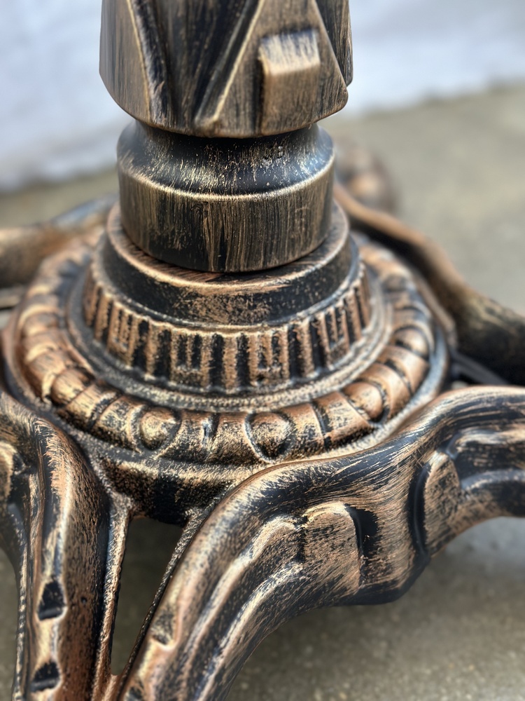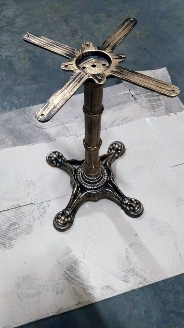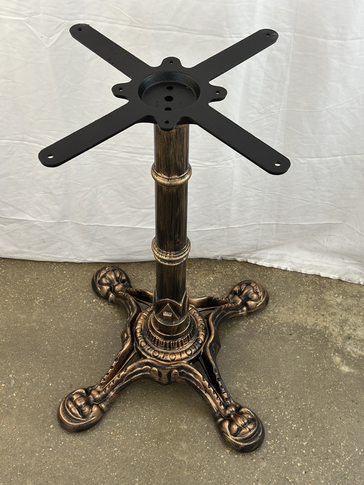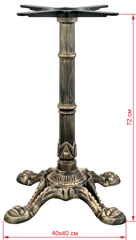 Подстолье чугунное. Труба и основание - чугунное литье. Цвет - имитация под бронзу. Рекоменд. макс. размер столешницы - Ø80. 80*80.