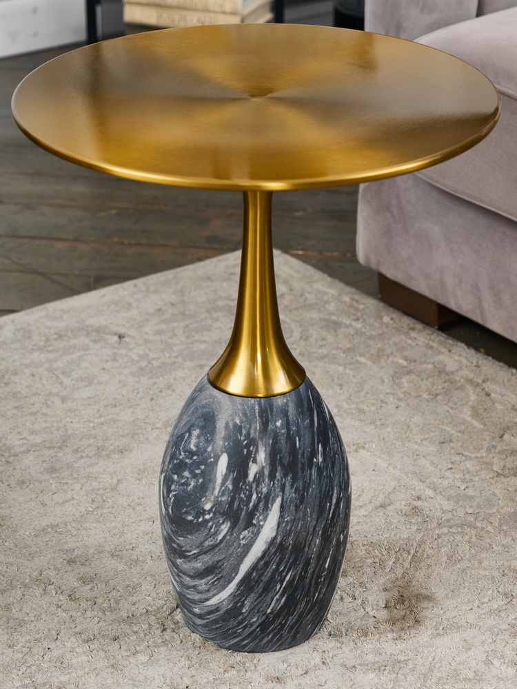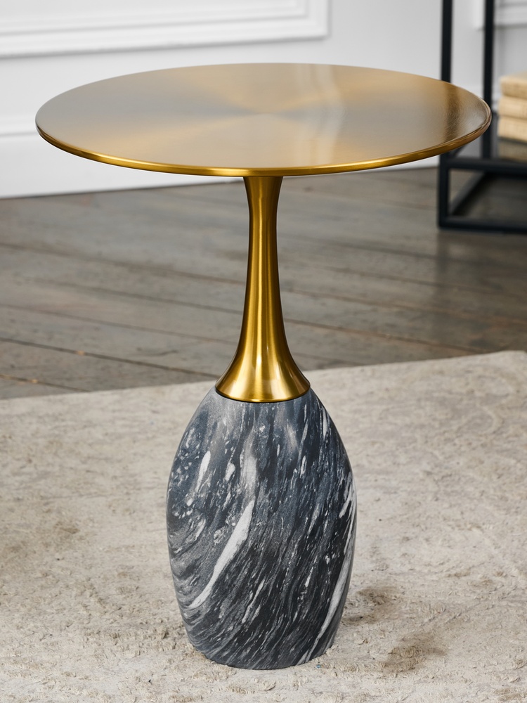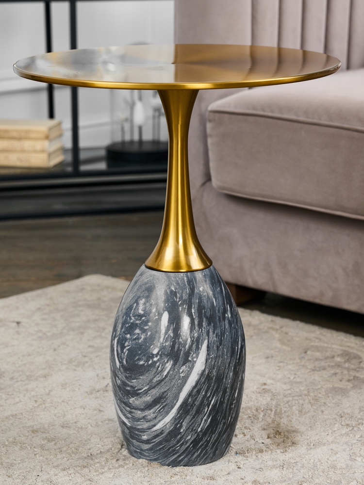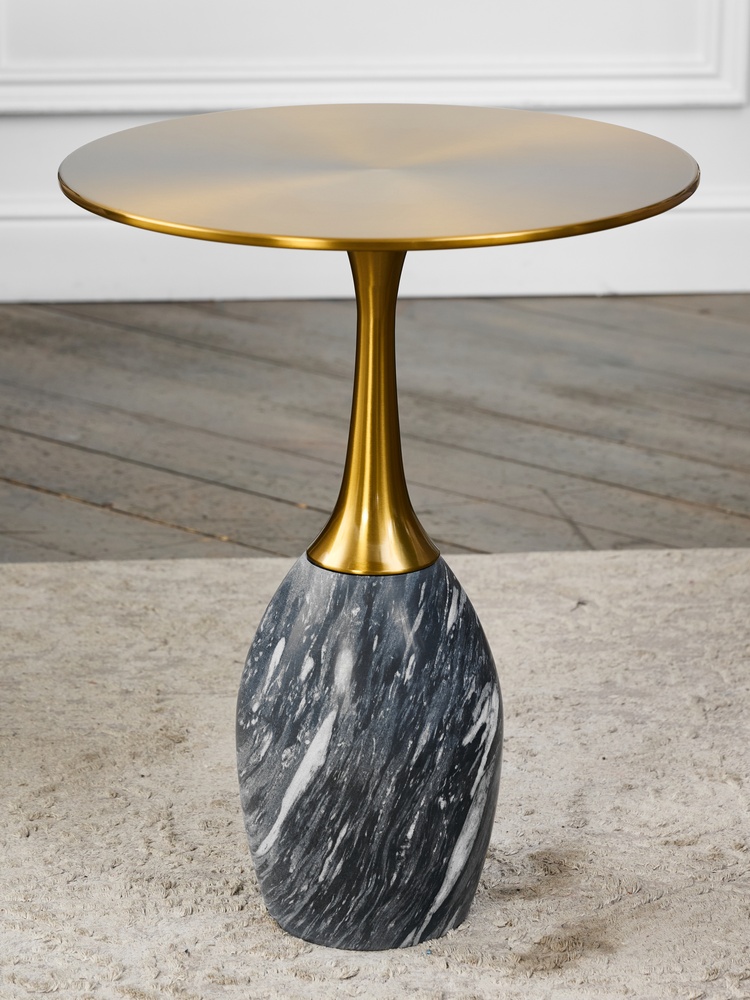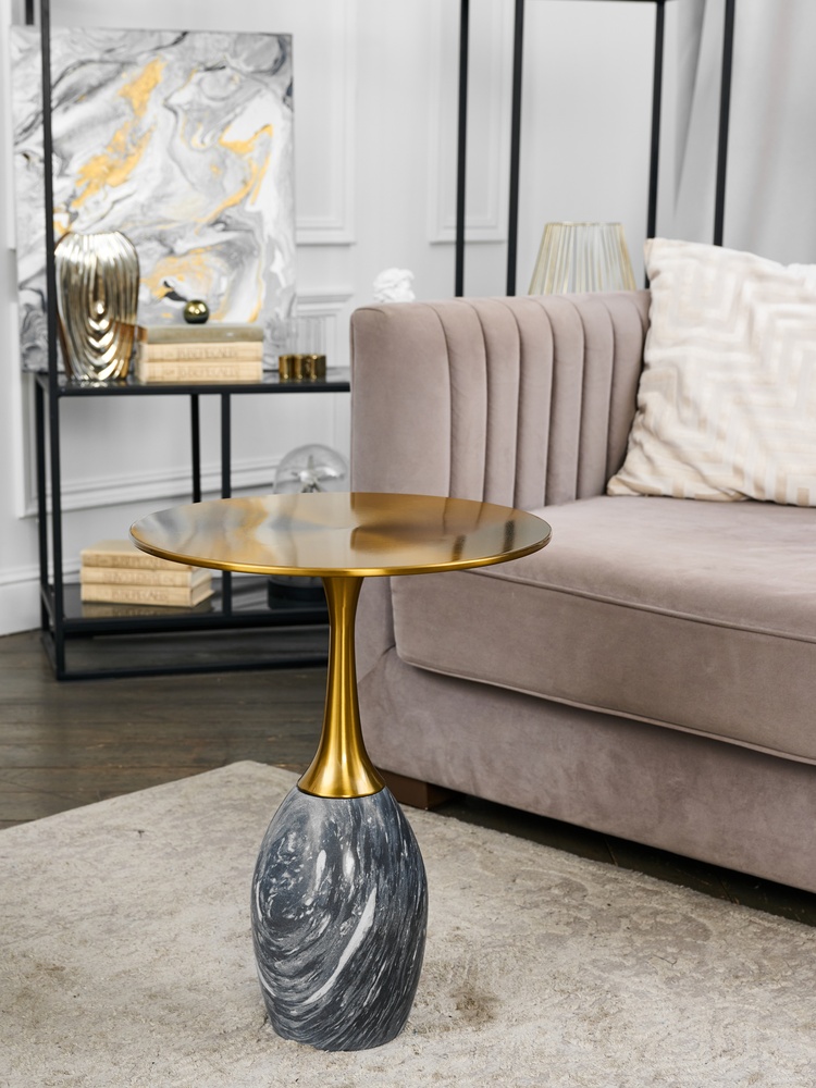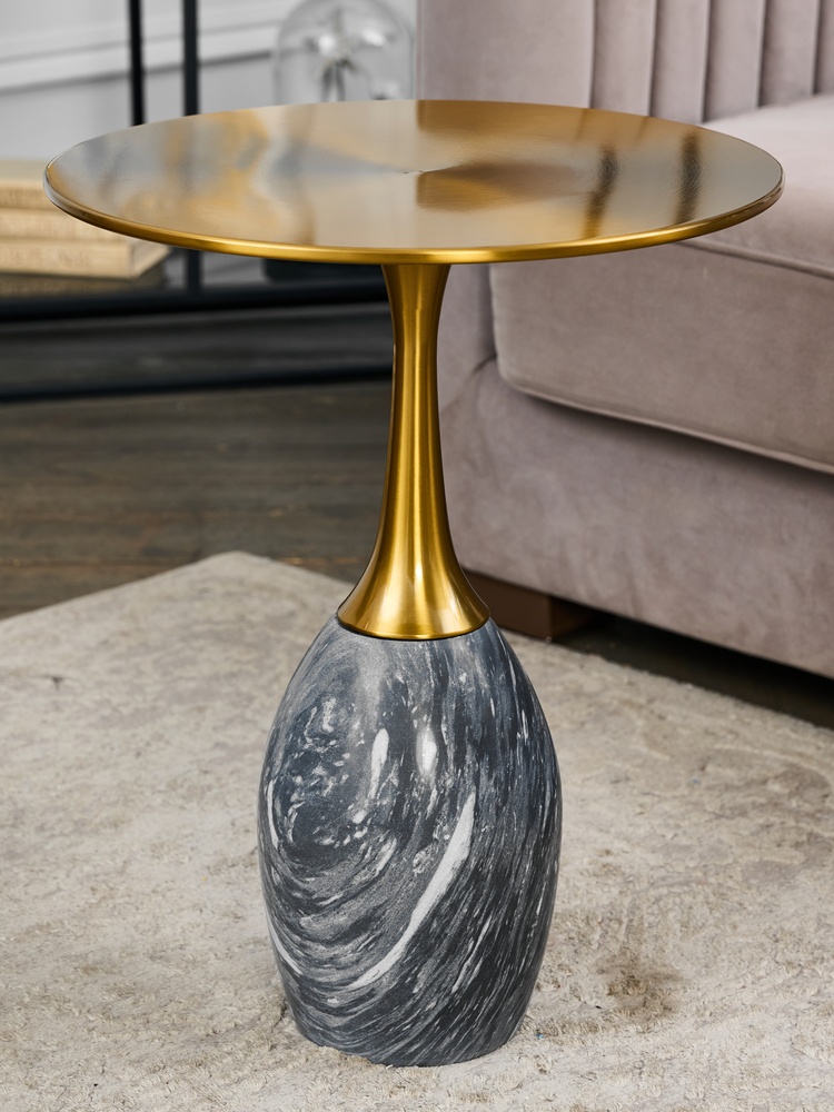 Стол журнальный. натуральный мрамор. Столешница (Ø41 см): сталь.