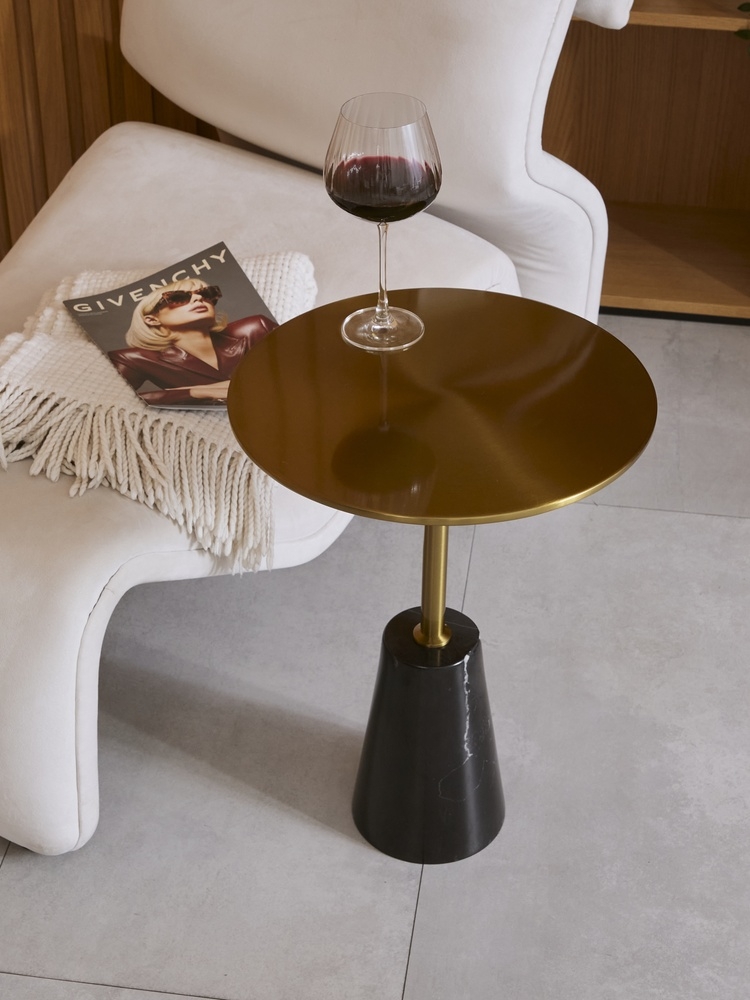 Стол журнальный. Основание: натуральный мрамор. Столешница: закаленное стекло.