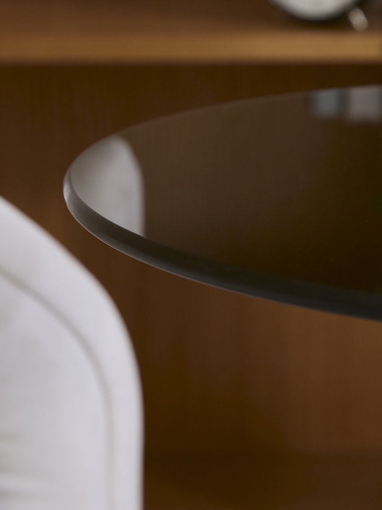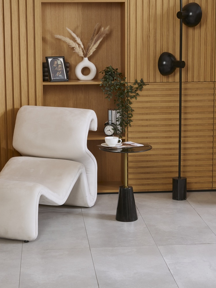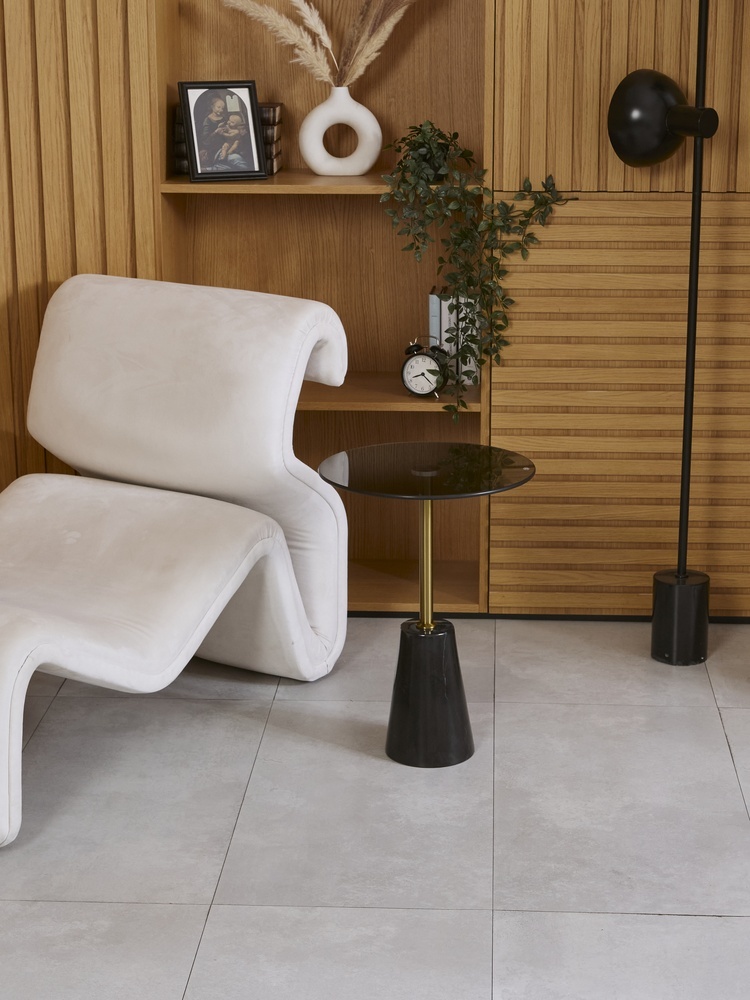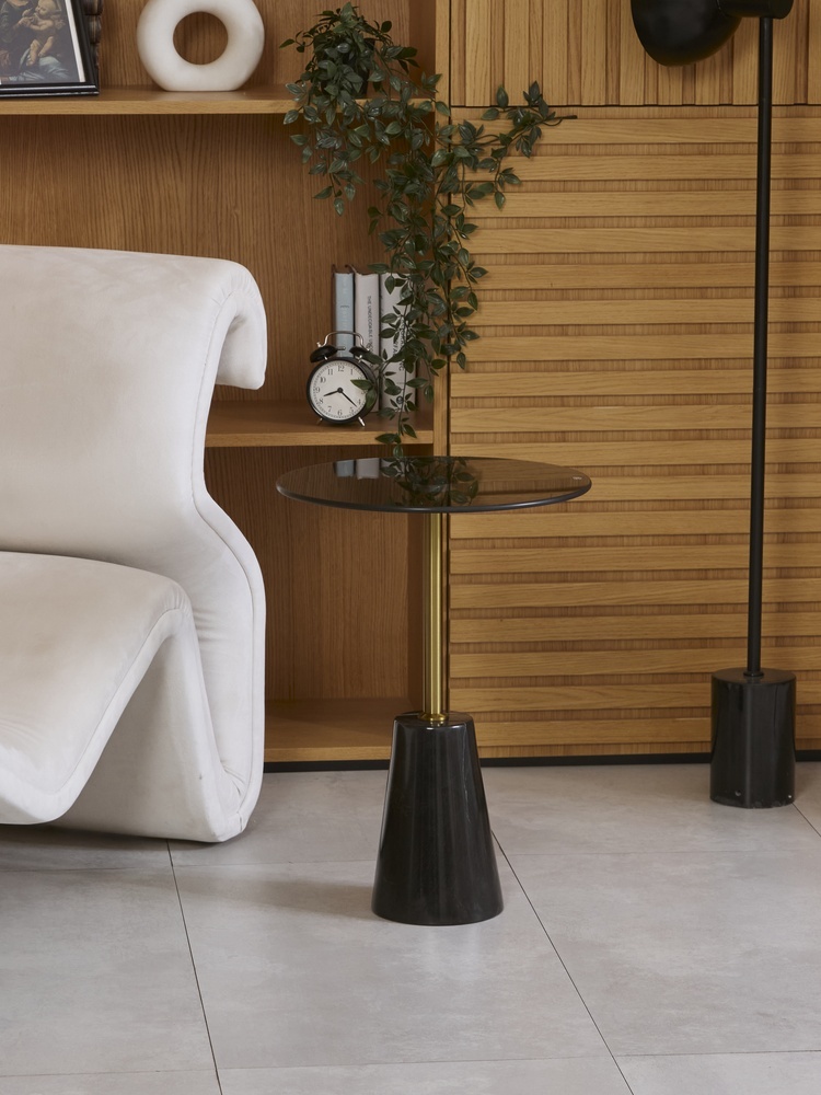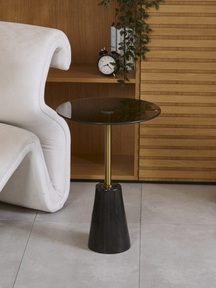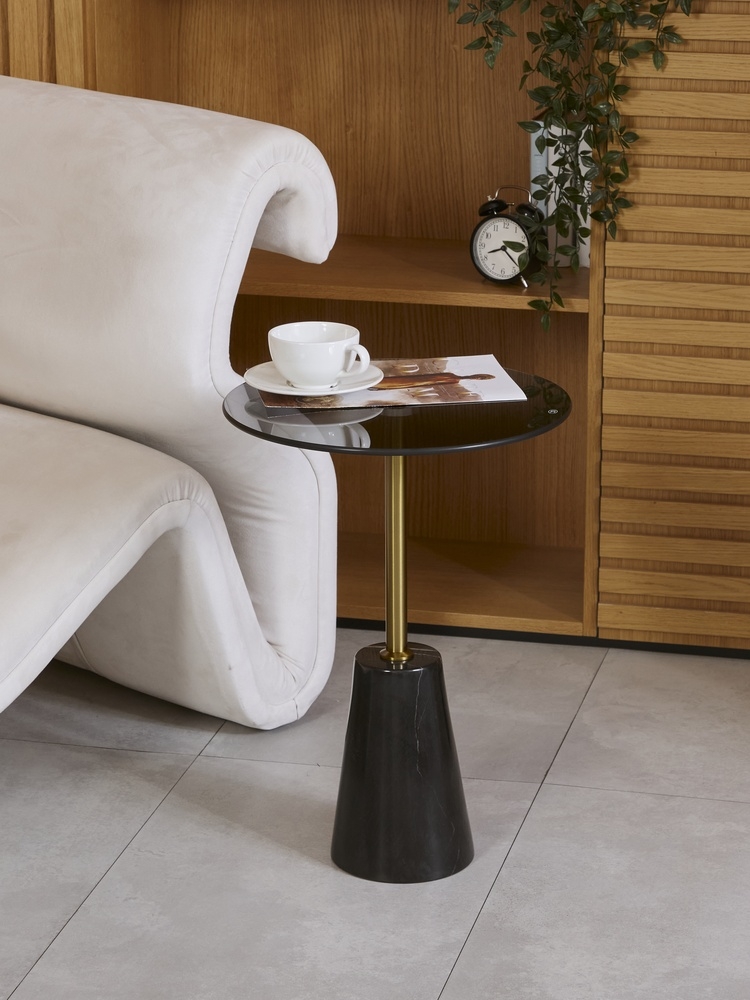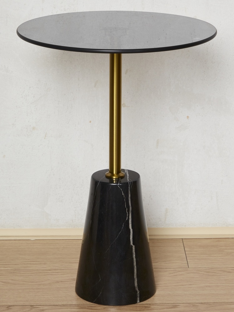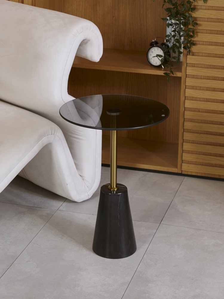 Стол журнальный. Основание: натуральный мрамор. Столешница: закаленное стекло.