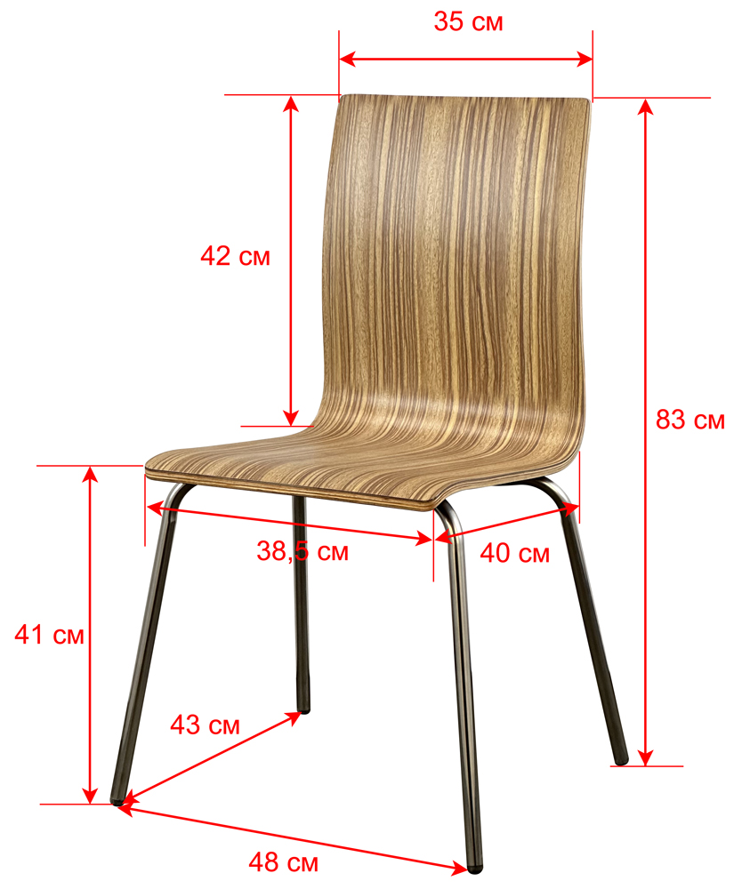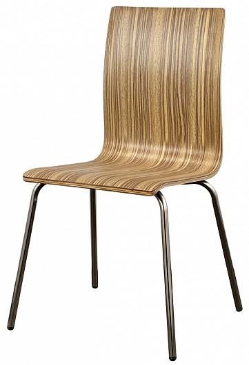 Стул металлический. Каркас - нержавеющая сталь полированная до зеркального вида. Спинка и сиденье - жесткое. Сиденье - ламинированная фанера. Цвет: светлая зебра 3043.
