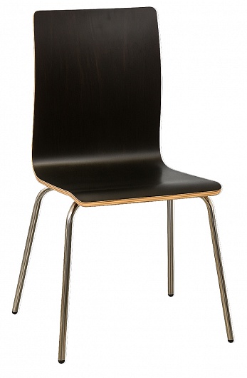 Стул металлический. Каркас -хромированная сталь, спинка и сиденье - жесткое. Сиденье - ламинированная фанера. Цвет: венге.